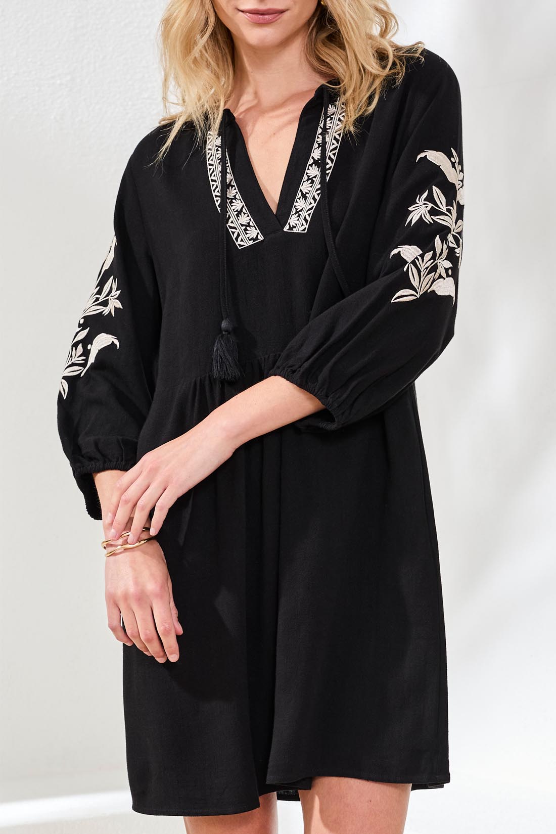 Tribal Dress - Embroidered Vee - Black