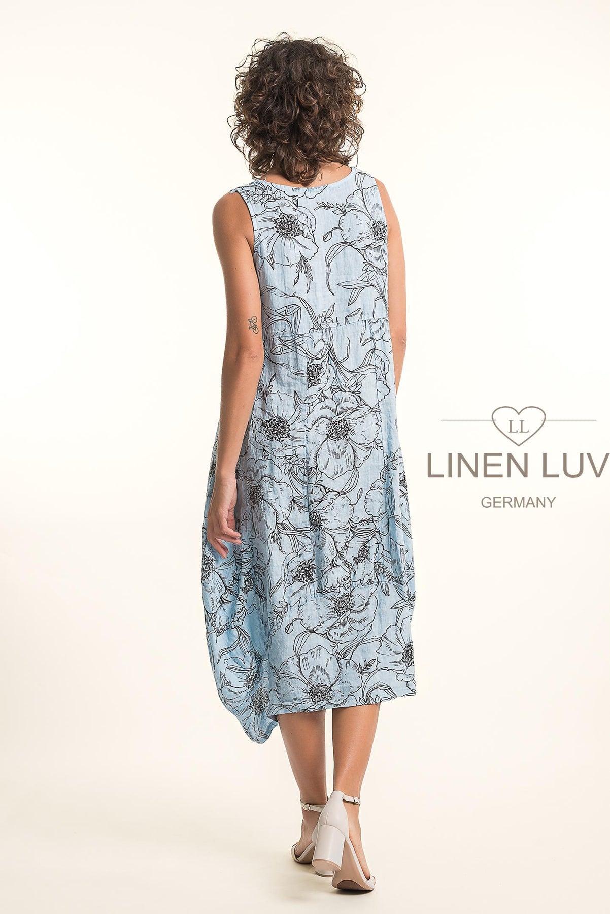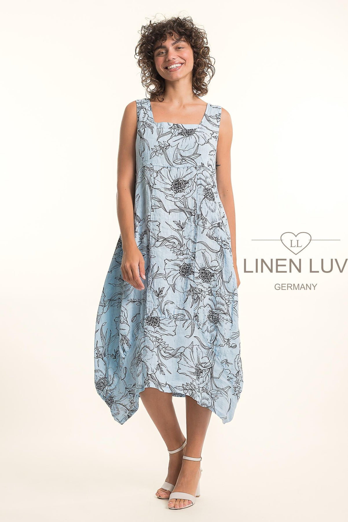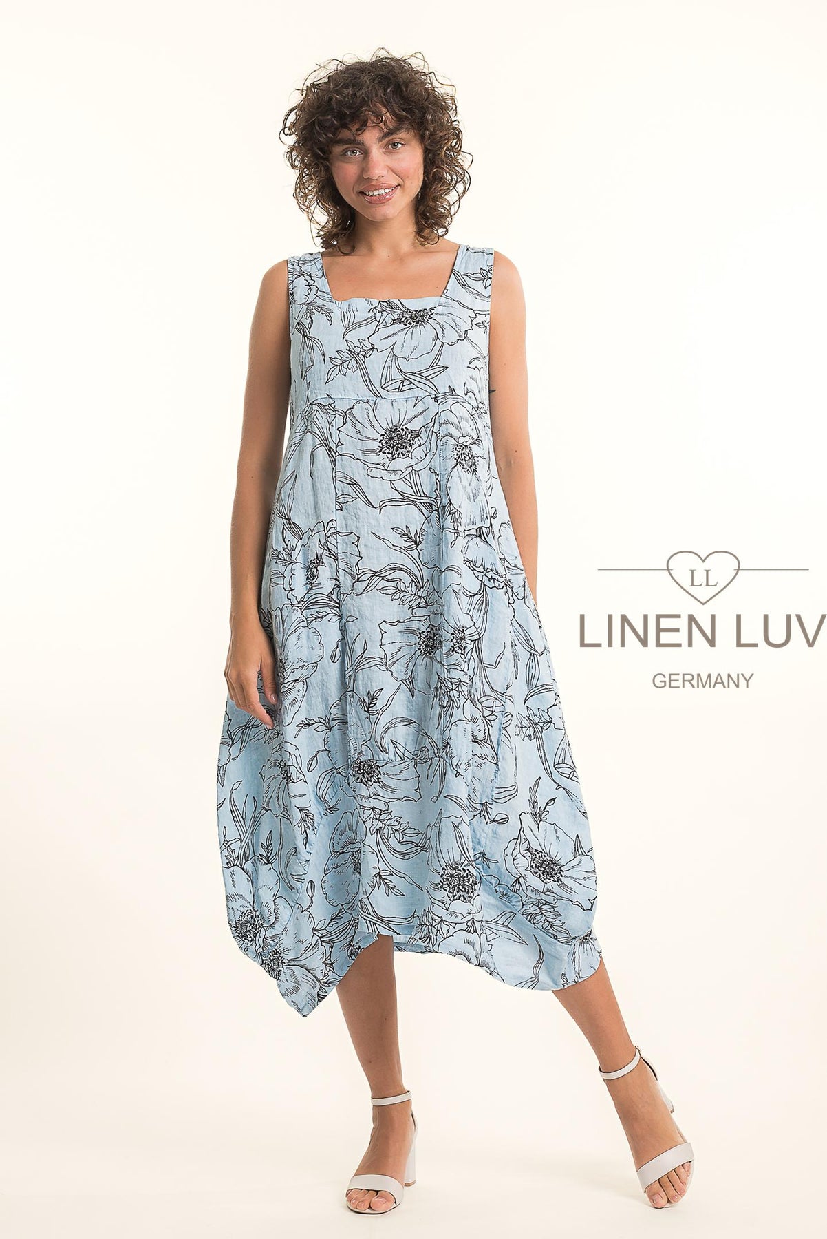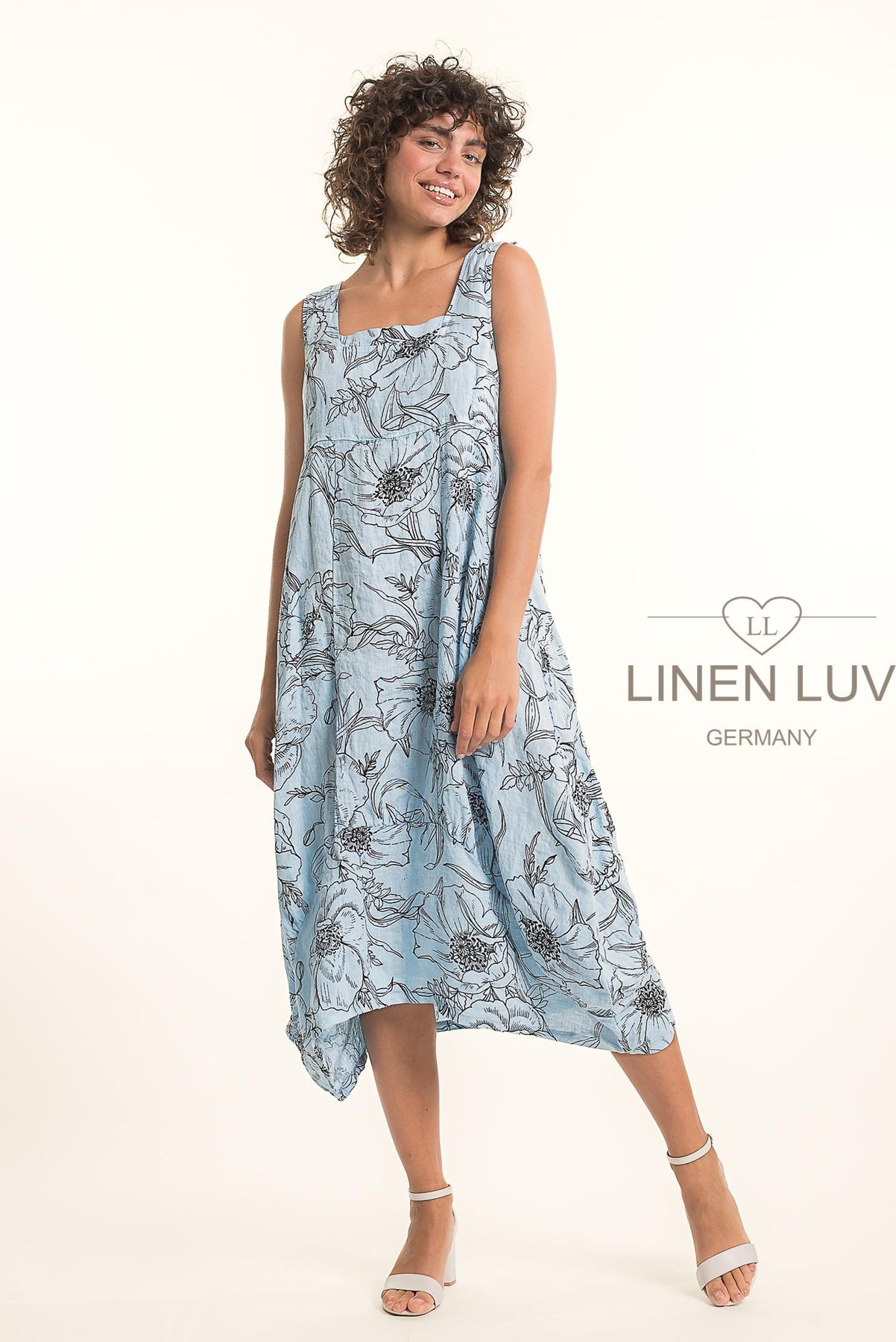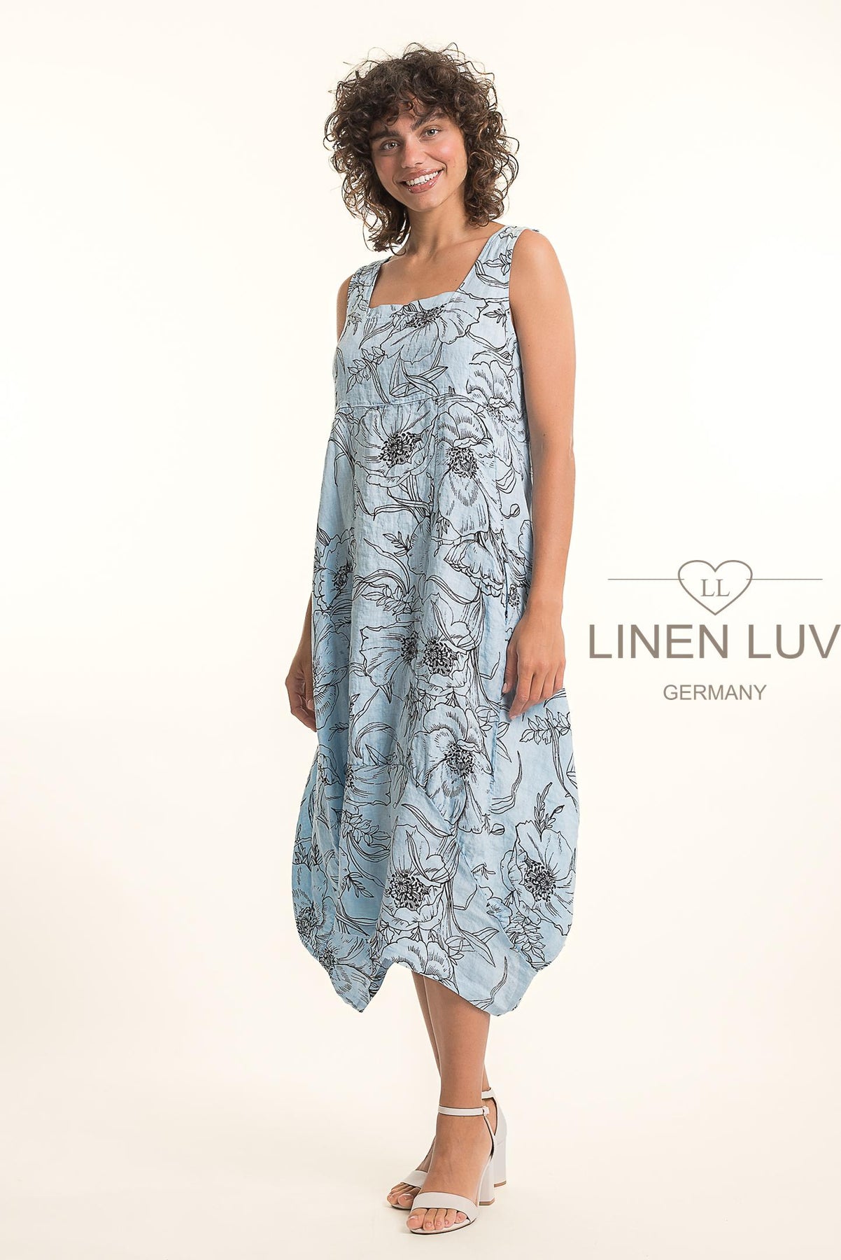 Regular price $139.99 Save $-139.99Beautiful lightweight 100% Linen Floral Midi Dress with empire waistline. Flattering vertical panes and asymmetrical bubble hemline. Pockets. Dress it up or down with heels or flats. Easy breezy style!